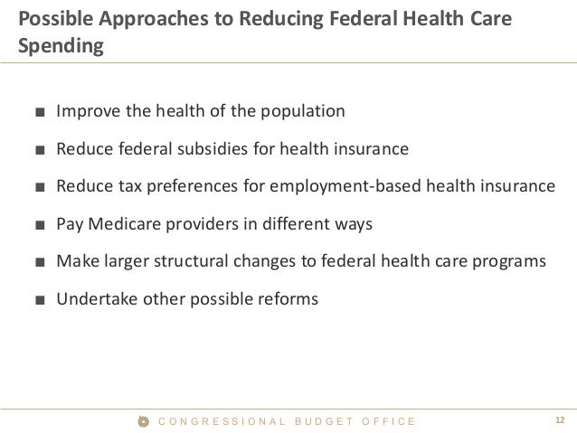 CBO's suggestions, Slide 13 below, for reducing the federal government's spending on healthcare: