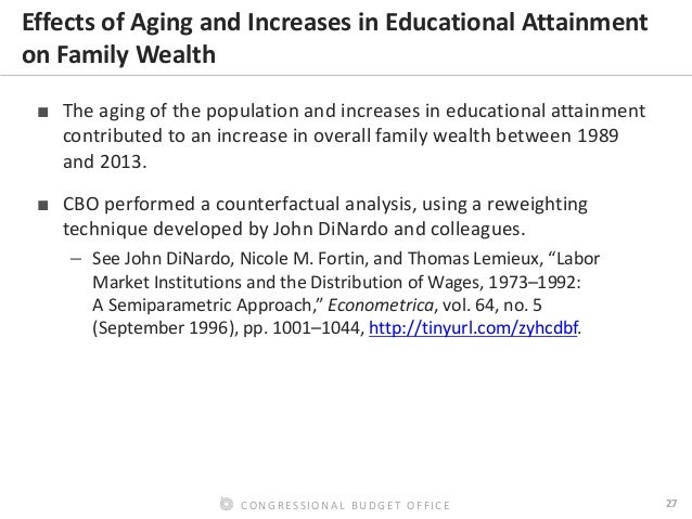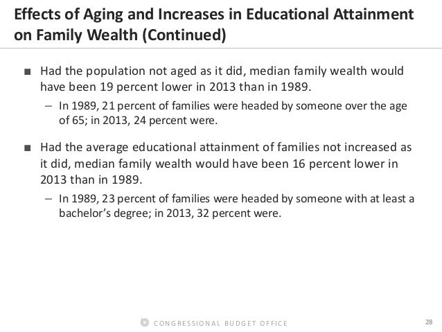With the known positive effects of age and education on income and wealth, it is not surprising CBO checked to see the effect of the changes in age and education of the US population from 1989 to 2013.